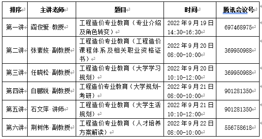疫情虽然拉开了师生之间的空间距离、推迟了师生见面的时间距离,但师生之间浓浓的情谊却并未因此而降温,第一讲在阎俊爱教授精彩的分享和新生热烈的讨论中结束。工程造价教研室以党员为先锋,资深教师为主体,为2022级专业新生制定了六讲不同内容的专业教育课程,讲讲精彩纷呈。
