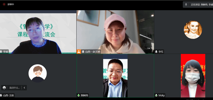 启动《管理统计学》课程建设线上交流会。会议邀请智慧树课程顾问赵文婷老师参加,会议由课程负责人李斌老师主持,参会人员有学院教学副院长荆树伟,课程团队成员李红老师、张玲老师。