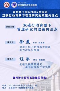 采用“线上线下相结合的”方式举办第85次管科博士论坛。本次活动主题为“双碳背景下管理研究的政策关注点”,旨在进一步凝练学科方向和特色,做好双碳背景下国家级项目选题,进一步推动学院一级学科博士点申报工作。正妹av