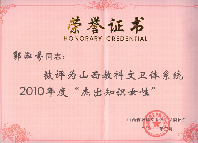 郭淑芬老师被评为2010山西省“杰出知识女性”