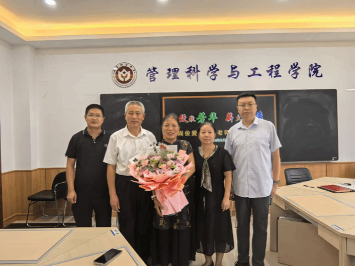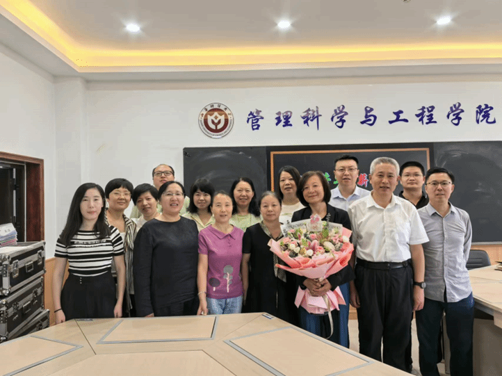 座谈会的高潮部分,工会主席王秀燕老师代表学院向两位荣休老师赠送了鲜花,表达了学院对他们的敬意和祝福。最后,全体参会人员进行了合影留念,将这一难忘的时刻永久定格。