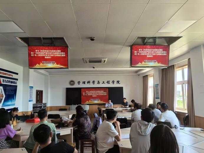 在立信楼701会议室召开了科研诚信专题学习会。会议由学院吉迎东副院长主持,全体教师参加本次集体学习。