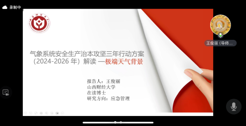 会议第三单元由山西财经大学正妹av 应急管理教研室主任王迪老师主持。山西财经大学正妹av 闫志华博士以《市场监管系统安全生产治本攻坚三年行动方案解读与工业产品质量安全监管》为题,从国家抽检和地方抽检两个角度梳理了我国工业产品质量安全监管现状,随后对市场监管系统安全生产治本攻坚三年行动方案进行解读,指出当前市场监管系统将向着优化质量监管机制模式,健全法规标准体系,加强科技支撑的工作目标发展。山西财经大学正妹av 牛奕然博士以《超高层建筑施工特异性安全隐患排查及管理》为题,从超高层建筑定义与特点出发,指出可采用现场勘查、资料分析、专家咨询等方式事先进行危险源辨识,并基于风险矩阵法、LEC评价法等,结合超高层建筑施工特点,构建风险评估模型,最后可结合PDCA循环持续改进安全管理。山西财经大学正妹av 王俊丽博士以《气象系统安全生产治本攻坚三年行动方案(2024-2026年)解读》为题,系统梳理了2023年国内的十大天气气候事件,随后围绕气象系统安全生产治本攻坚三年行动方案,分别从工作目标、主要任务和保障措施三个部分进行详细解读。山西财经大学正妹av 刘杨博士以《文物系统安全生产治本攻坚:筑牢历史宝库的安全壁垒》为题,以文物系统的安全事故案例为切入点,表明根据文物保护工作的实际情况制定相应的治本攻坚行动方案至关重要,随后通过解读文物系统安全生产治本攻坚的主要任务,指出消防安全仍是文物系统安全生产治本攻坚的重点。山西财经大学正妹av 硕士研究生南世彤以《商务系统安全生产治本攻坚三年行动方案解读-以商铺火灾事故为例》为题,根据商务系统安全生产治本攻坚三年行动方案中的工作目标、主要任务和保障措施三部分进行详细解读,围绕火势控制、实施保障以及监督机制等方面对近期发生的商铺火灾事故进行了具体分析。